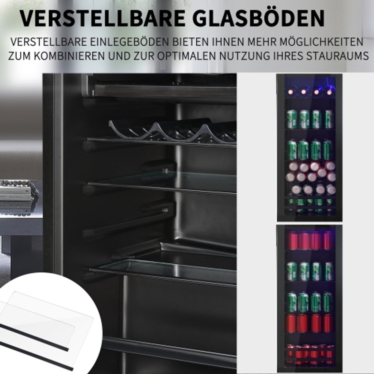 - Je veel blikjes en flessen wilt koelen met flexibel aanpasbare planken.