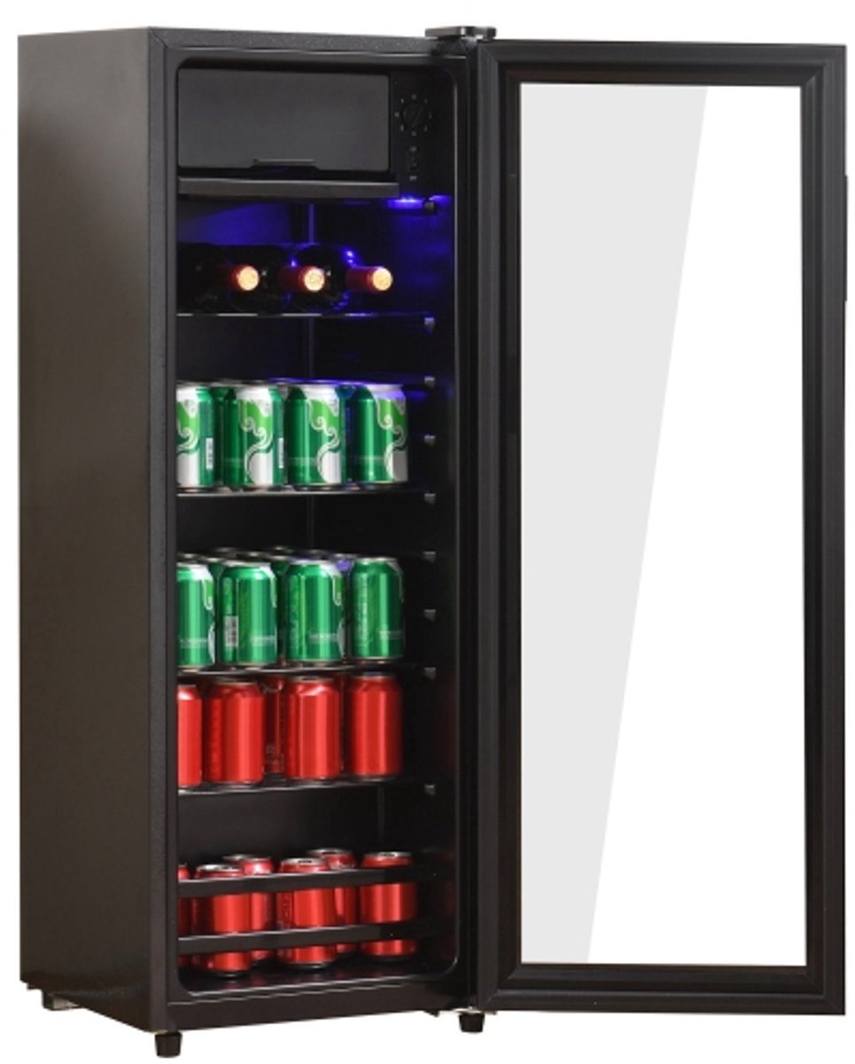 De SC-128P is een slanke drankenkoelkast met glazen deur en een totale inhoud van 128 liter, ontworpen voor iedereen die veel drankjes overzichtelijk en op serveertemperatuur wil bewaren zonder een grote keukenkoelkast te hoeven inzetten. Met een stille, krachtige compressor, verstelbare planken en energiezuinige werking past hij net zo goed in de woonkamer of thuisbar als in kantoor- of hobbyruimtes.