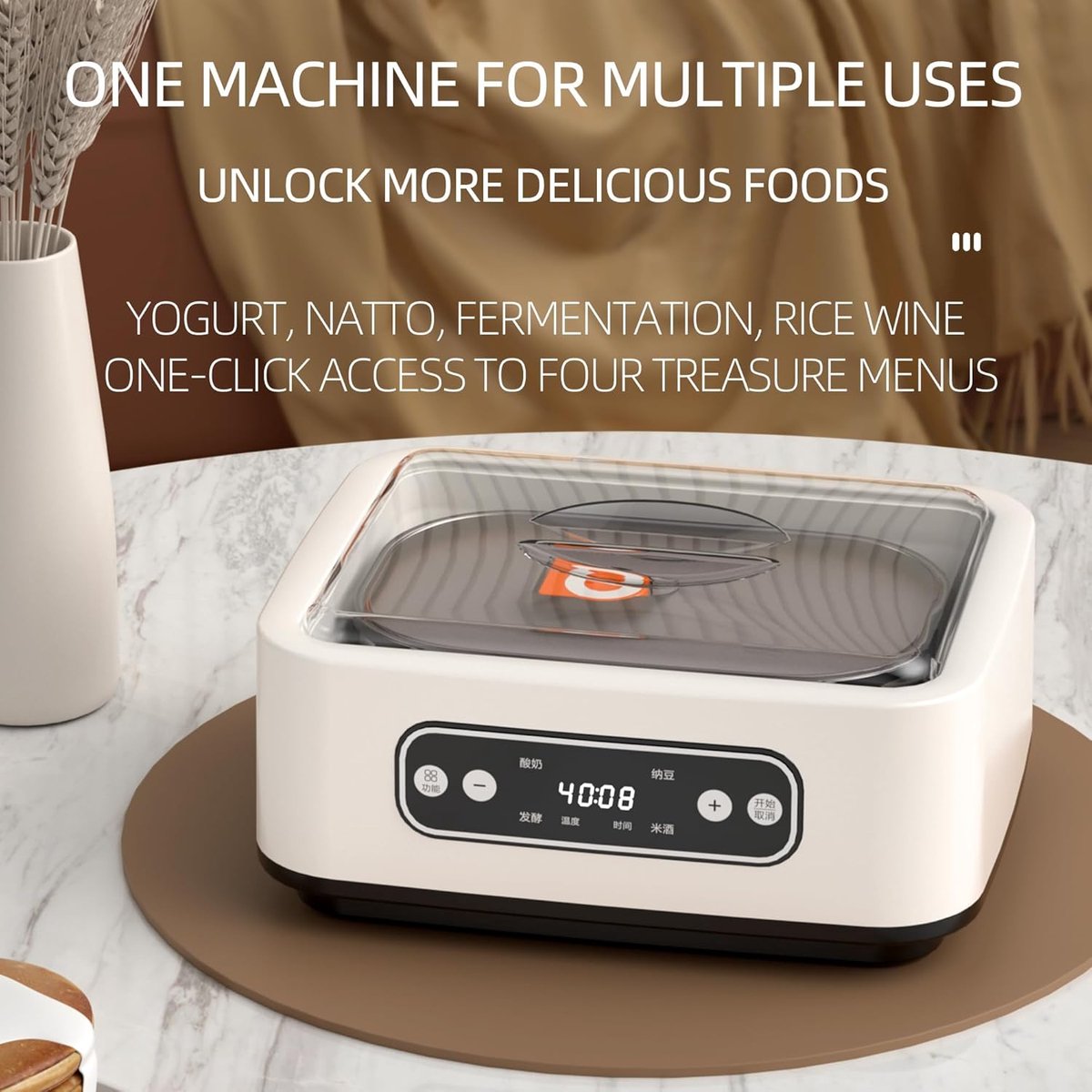 Deze yoghurtmaker is een elektrische keukenhulp die melk en startersculturen op een constante, gecontroleerde temperatuur fermenteert tot volle, huisgemaakte yoghurt. Dankzij de combinatie van een LED-scherm en een microcomputergestuurde tijdklok bepaal je zelf de fermentatietijd, terwijl de machine de warmte stabiel houdt. Met 9 aparte potjes bereid je in één keer verschillende smaken, handig voor gezinnen of iedereen die graag varieert met fruit, zoetstoffen of soorten melk.