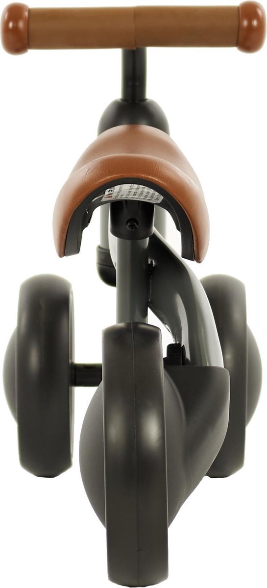 Het ontwerp valt direct op door de positionering van het achterwiel in het midden van de achterzijde. Dit voorkomt dat de voetjes van het kind tegen het wiel komen tijdens het lopen of spelen — een praktisch verschil ten opzichte van veel andere modellen die twee achterwielen hebben. De twee voorwielen verhogen de stabiliteit, waardoor het evenwicht bewaren eenvoudiger is voor beginnende rijders.
