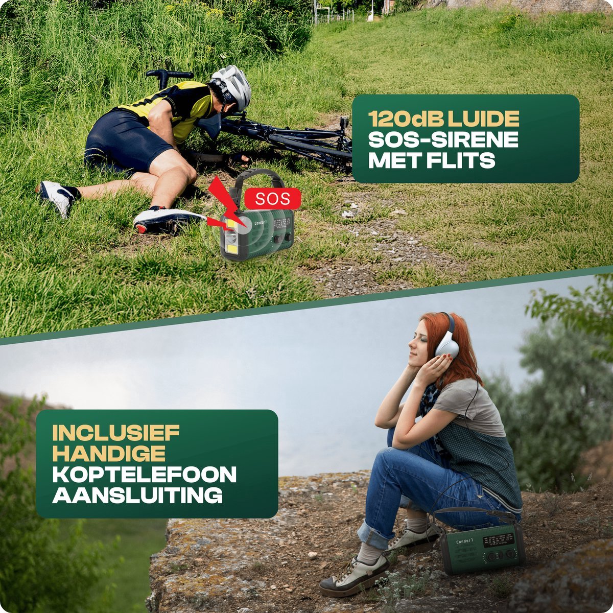 De Lyxus noodradio (2025-versie) is een compacte, robuuste alleskunner voor je nooduitrusting. Hij combineert een krachtige powerbank van 20.000 mAh met een AM/FM/WB-radio, heldere zaklamp en leeslamp, een luide noodsirene en zelfs noodgereedschap zoals kompas, mesje en een vuur ontsteker. Dit is de duo-uitvoering: je ontvangt twee toestellen, handig als reserve of om te verdelen over huis en auto. Dankzij drie manieren van opladen – zonnepaneel, opwindhendel en via USB of USB‑C – blijf je in beweging altijd bereikbaar en geïnformeerd.