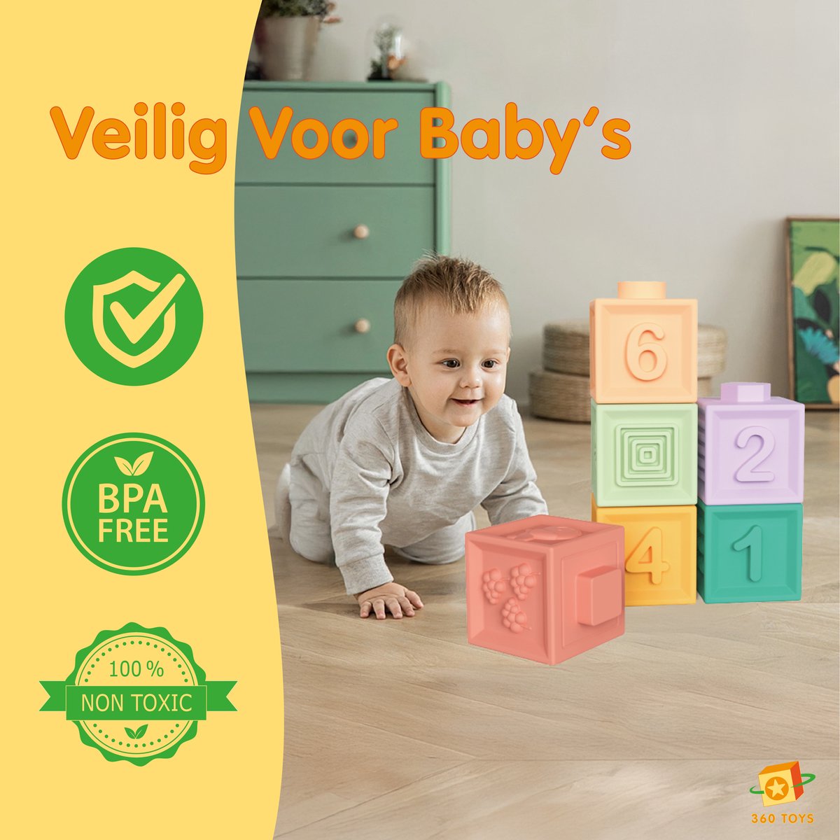 Tot slot speelt duurzaamheid een rol. Siliconen en ABS zijn slijtvast bij normaal gebruik. Bovendien zijn ze eenvoudig schoon te houden, wat de levensduur verlengt en de hygiëne ten goede komt. Doordat elk onderdeel op een andere ontwikkelingsfase mikt, eindigt de set niet snel onderaan de speelgoedmand, maar blijft hij relevant naarmate je kind groeit.