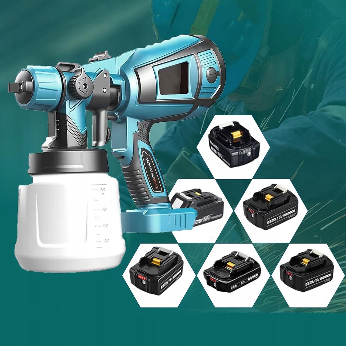 Het is bedoeld voor doe‑het‑zelvers en vakmensen die een betrouwbare, draagbare spuitoplossing zoeken met weinig gedoe: van huisdecoratie en meubelrenovatie tot precisiewerk en het behandelen van oppervlakken. Dankzij de 900 ml tank en de compatibiliteit met Makita 18V/21V accu’s werk je vlot door, zonder stopcontact in de buurt.