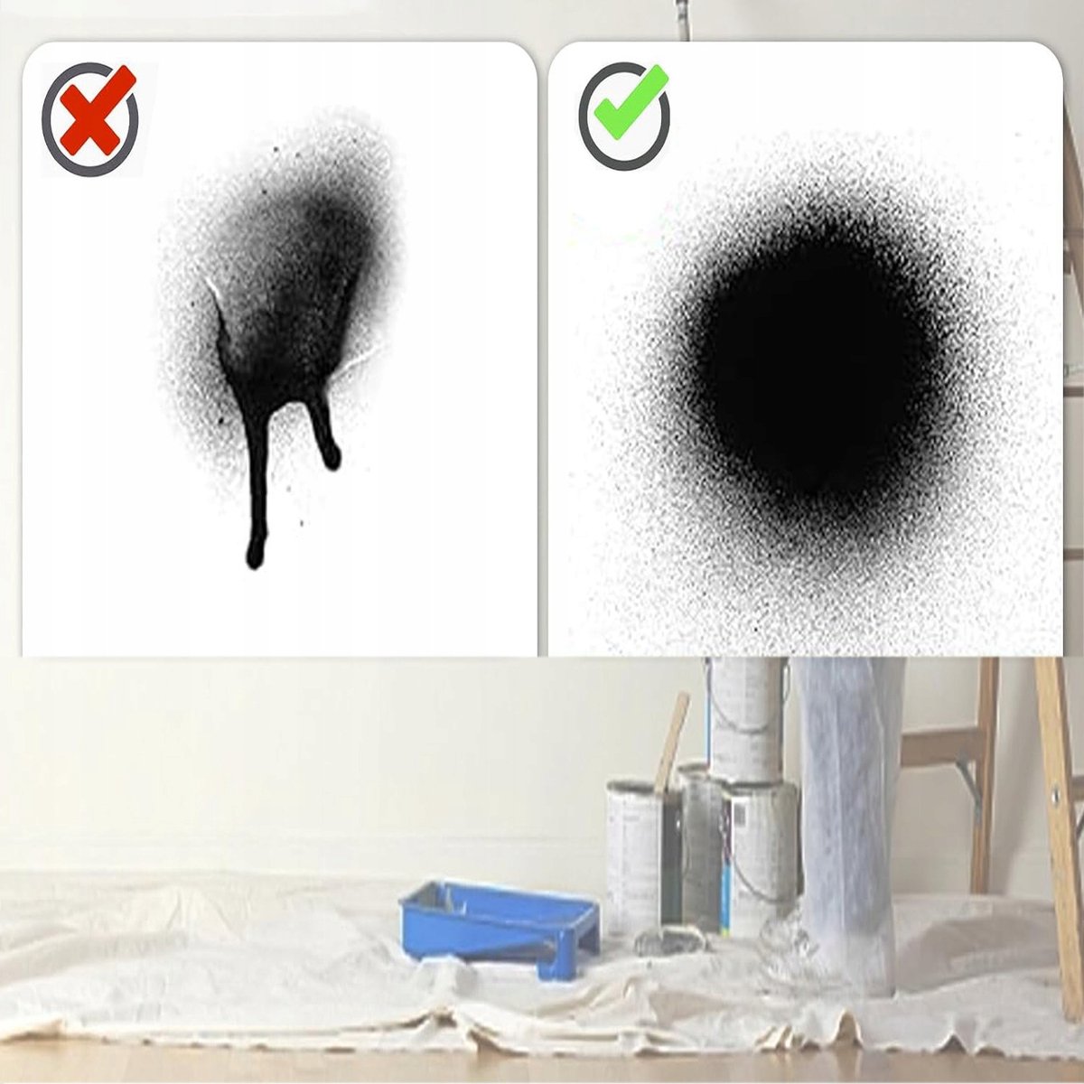 - Houd een logboekje bij: welke nozzle, verdunning en instellingen werkten goed met welke verf. Zo herhaal je eenvoudig een geslaagd recept.