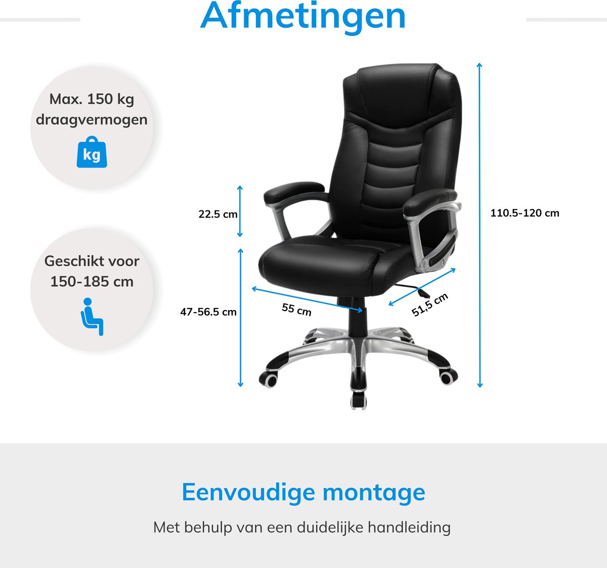 Voordeel: De constructie en gebruikte materialen ondersteunen gebruikers tot 150 kg, waardoor de stoel geschikt is voor een breed scala aan lichaamstypes.