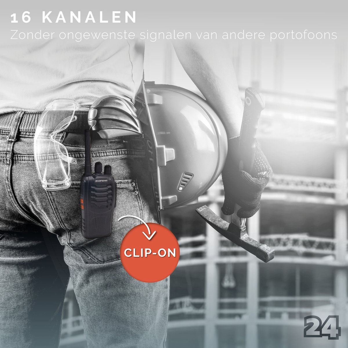 - Start direct met communicatie dankzij 16 kanalen per portofoon.