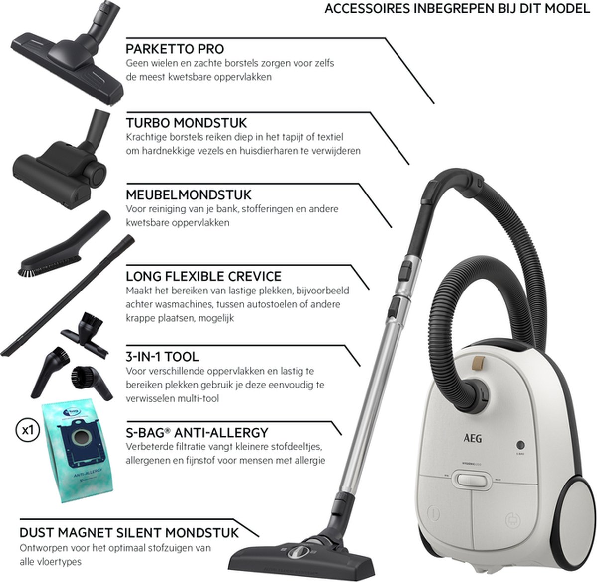 AEG AB61H6SW Allergy 6000 – Stofzuiger met zak – Parketborstel – Dierenhaar – Hepa 14 review voor huisdieren Prijzen