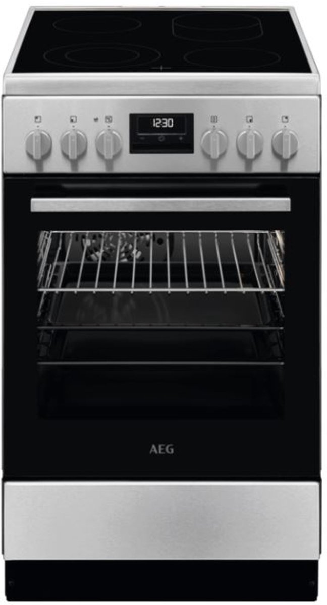 De AEG CCB544BGBM is een vrijstaand fornuis, ideaal voor Nederlandse keukens met beperkte ruimte. Met 500 mm breedte, glaskeramische kookplaat met 4 zones en een 57 liter elektrische oven kook en bak je efficiënt met energieklasse A.