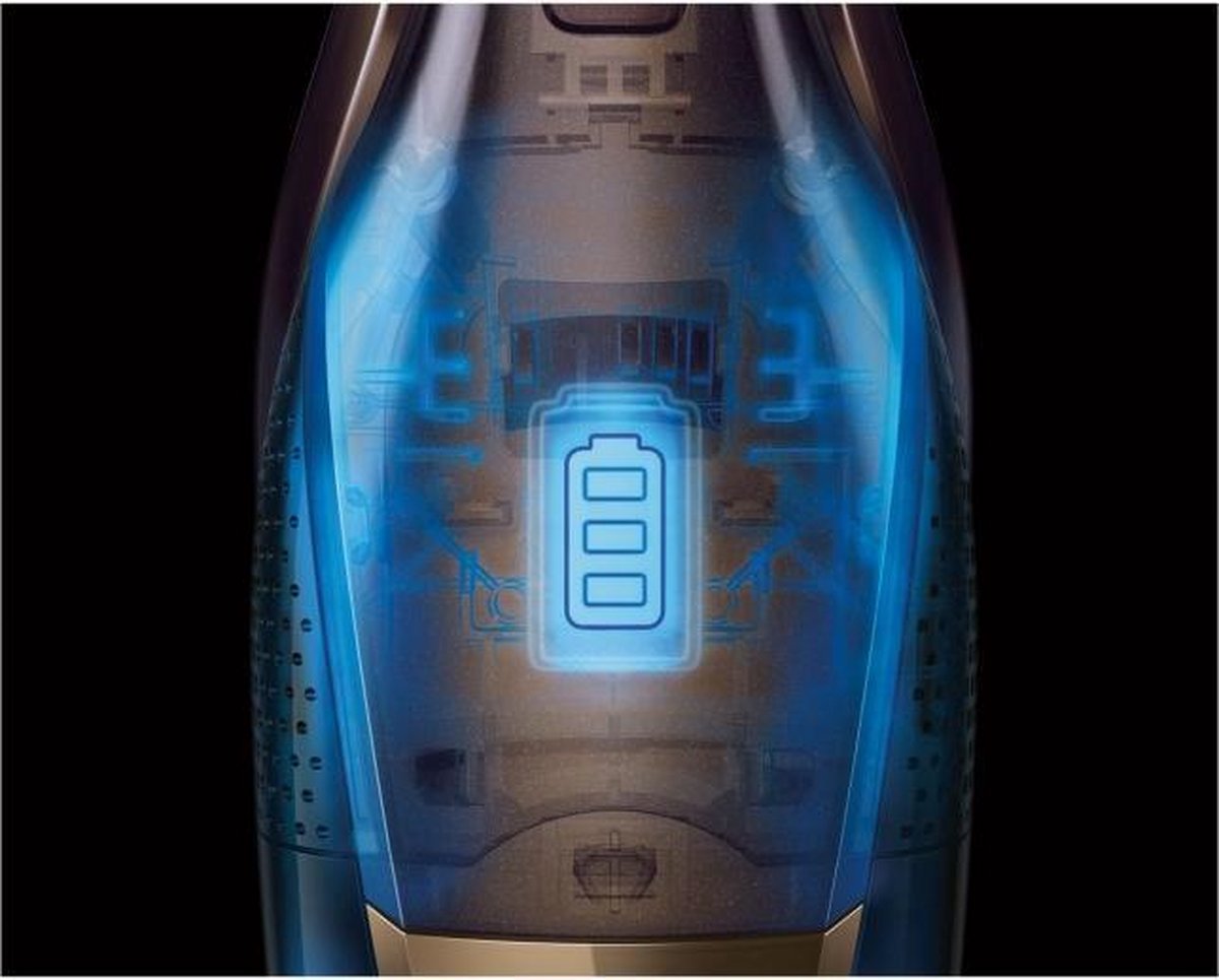 Volgens de fabrikant levert de lithium HD TurboPower-accu een maximale werktijd tot 45 minuten. Dat is ruim voldoende voor het dagelijkse onderhoud van een gemiddeld appartement of een snelle ronde in een gezinswoning. De accu is in ongeveer 4 uur weer volledig opgeladen. Vergeleken met traditionele nikkelaccu’s gaat dit type volgens de productinformatie twee keer zo lang mee en is het lichter, wat bijdraagt aan de fijne balans van het apparaat.