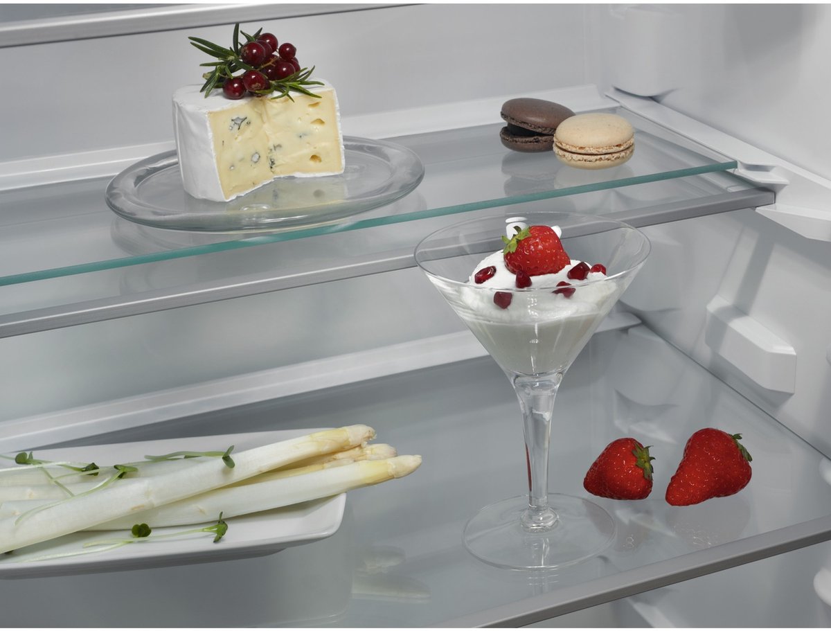 - Koelruimte-legplateaus: 3 volledige breedte + 1 FlexiShelf (veiligheidsglas, Metallic Grey)