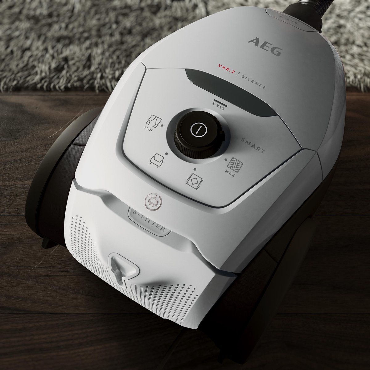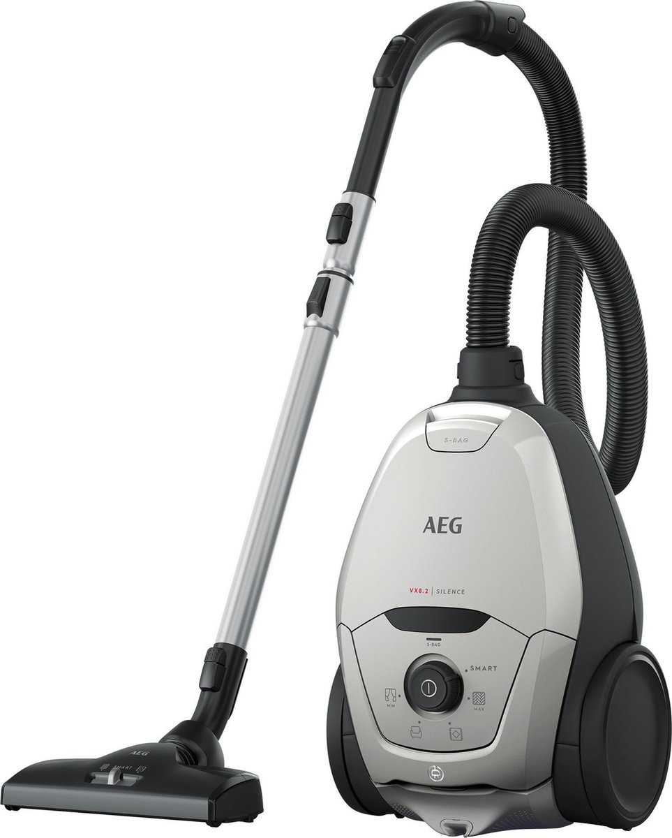 De AEG VX82-1-2MG is een stille, krachtige stofzuiger met zak uit de VX8.2-serie, gebouwd voor wie comfort, eenvoud en duurzaamheid wil combineren. Hij schakelt automatisch het zuigvermogen bij wanneer je van harde vloer naar tapijt rijdt en glijdt dankzij de grote, rubberen wielen soepel door het huis. De fabrikant claimt een geluidsniveau van 57 dB(A), gemeten volgens EU-richtlijn 666/2013: dat is uitzonderlijk laag voor een volwaardige stofzuiger met zak.