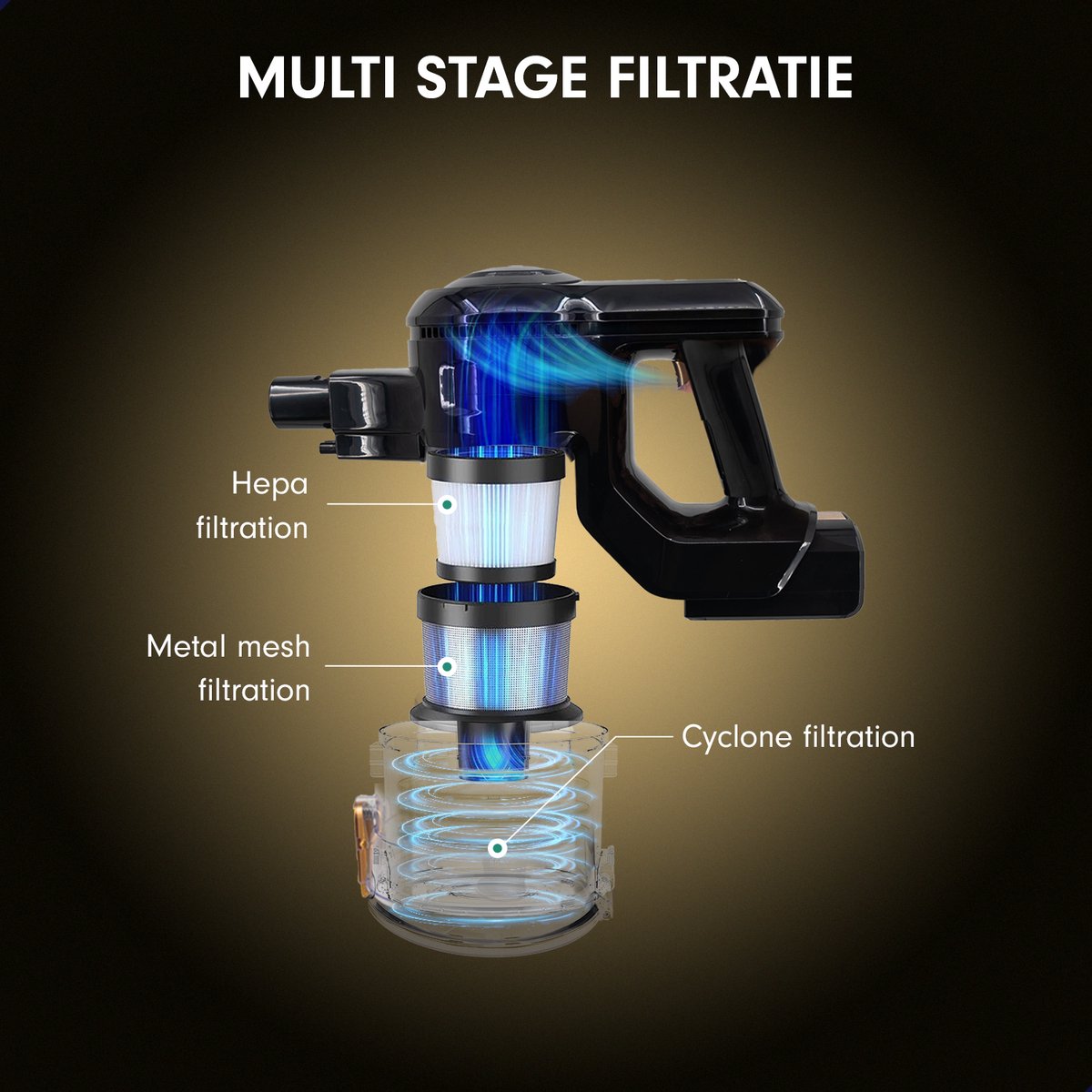 - Het HEPA‑filtersysteem houdt volgens de fabrikant 99,99% van de stofdeeltjes tegen, en is uitwasbaar.