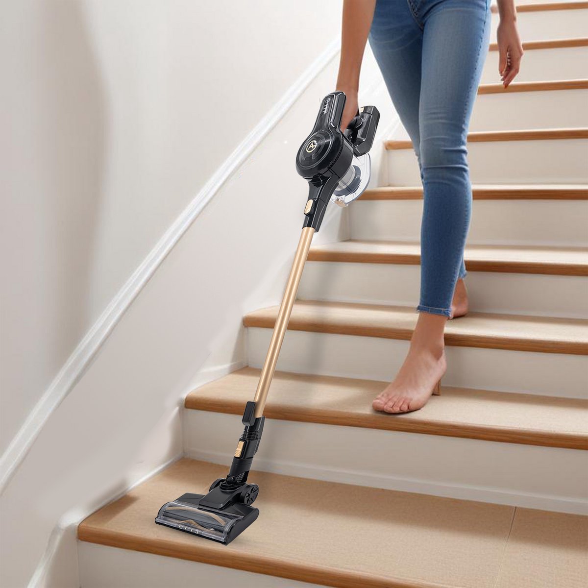 De AG4400 draadloze steelstofzuiger combineert lage belasting voor je lichaam met krachtige prestaties op uiteenlopende vloeren. De 300 watt motor, de keuze tussen normaal en turbo, het ruime 1,2 liter reservoir en de wasbare HEPA‑filter maken het een praktisch en kostenefficiënt geheel. LED‑verlichting en wandmontage verhogen het gebruiksgemak in het dagelijks leven, terwijl het lage gewicht het ideale hulpmiddel maakt voor trappen, bovenkasten en snelle schoonmaakrondes.