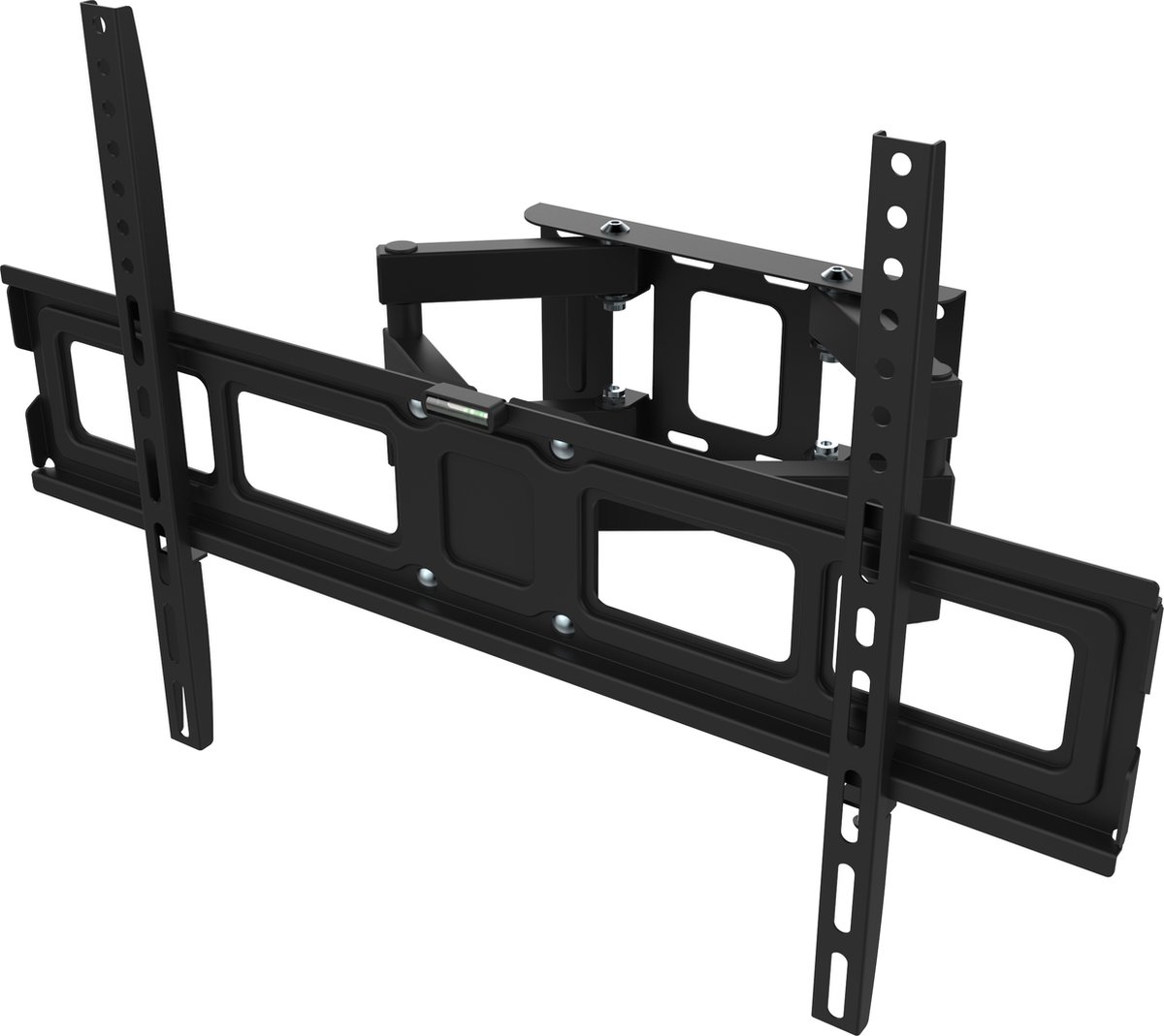 Eenvoudig te monteren. De ingebouwde waterpas is voldoende omdat je de tv achteraf nog kunt bijstellen. De schroeven voor bevestiging aan mijn Samsung-televisie waren te lang; ik heb vulbusjes moeten gebruiken. Na ongeveer zes maanden zat de beugel half los van de muur omdat de meegeleverde pluggen faalden. Ik raad aan M8 keilbouten te gebruiken voor een stevige bevestiging.