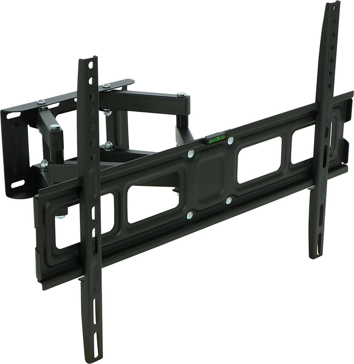 Ik zocht een goedkope, maar stevige beugel voor een 43 inch scherm en deze voldeed precies. Het materiaal voelt degelijk aan en alle bevestigingsmaterialen worden meegeleverd. Leuk detail is de bijgeleverde waterpas die je op de beugel klemt, al heb ik uiteindelijk toch een gewone waterpas gebruikt. Ik heb de beugel opgehangen in een muur van gasbetonblokken en daarvoor speciale pluggen bij de bouwmarkt gehaald. De montage is solide: de draaipunten zijn vrij stroef, waardoor je de beugel beter verstelt door de beugel zelf te verplaatsen dan door aan de tv te trekken. Zodra hij in de gewenste stand staat is hij juist zeer stabiel. Ik ben erg tevreden met de aankoop en durf er zelfs mijn duurdere tv mee op te hangen. Prijs-kwaliteitverhouding is uitstekend en de levering was perfect.