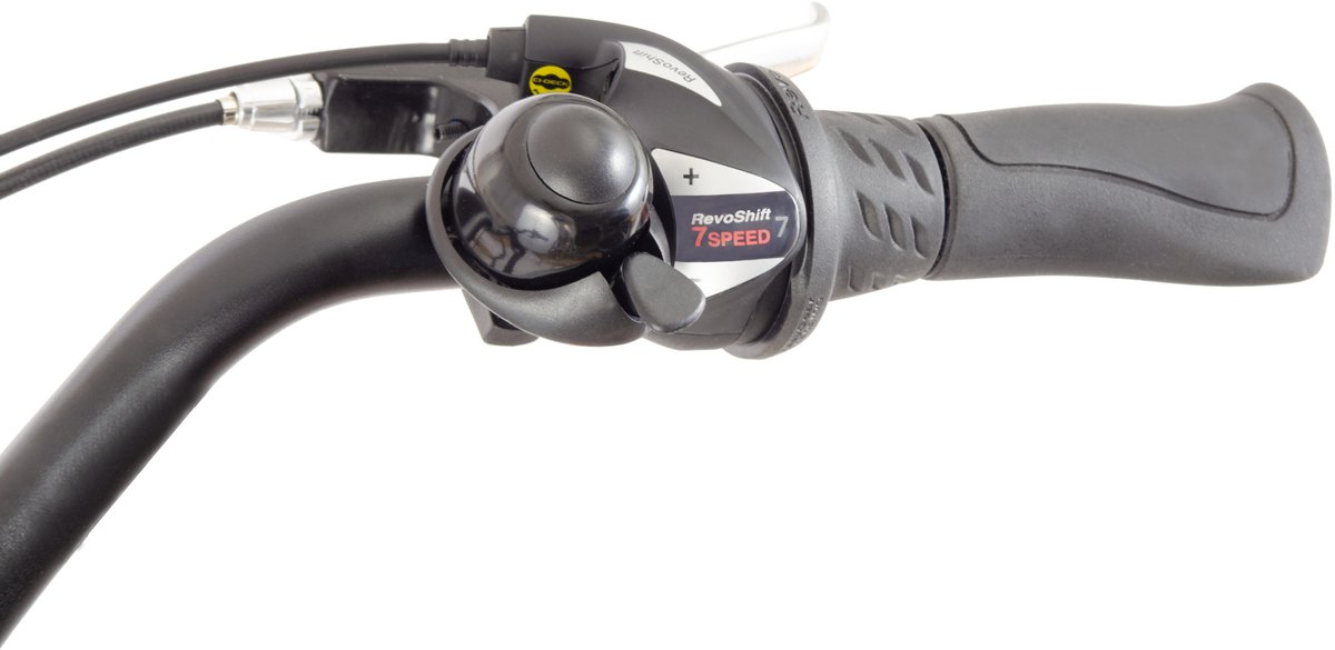 - Schakel efficiënt op elk terrein, 7 Shimano Tourney versnellingen met Revoshifter.