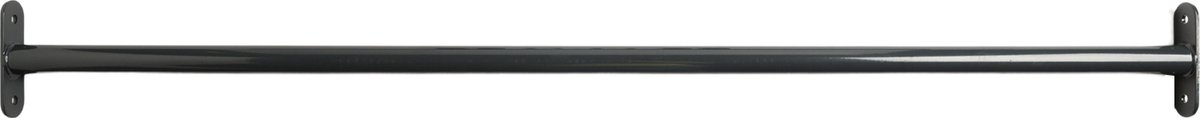 De stang is gefabriceerd van metaal met een gepoedercoate afwerking, wat slijtvastheid en een egale look geeft. De wanddikte is 2 mm en de buis heeft een diameter van 32 mm, wat een comfortabele grip biedt voor de meeste handen. Afmetingen: 1250 mm lengte en Ø 32 mm (bron: listing, checked 2025). De hoeken zijn afgerond, wat de kans op scherpe randen bij montage verkleint en er netter uitziet tegen de muur.