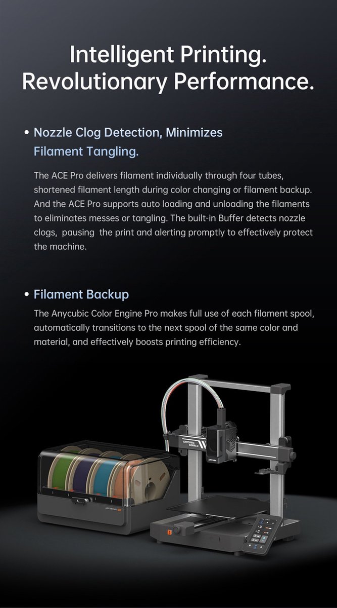 Of je nu functionele onderdelen, miniaturen of sierobjecten print: de Kobra 3 Combo combineert snelheid (tot 600 mm/s), hoge temperatuurtolerantie en slimme beveiligingen met een Color Engine Pro-systeem voor gecontroleerd, meerkleurig 3D‑printen. Alles bij elkaar levert dit een set functies die erop gericht is om fouten te voorkomen en je doorlooptijd te verkorten (bron: listing, gecontroleerd 2025).