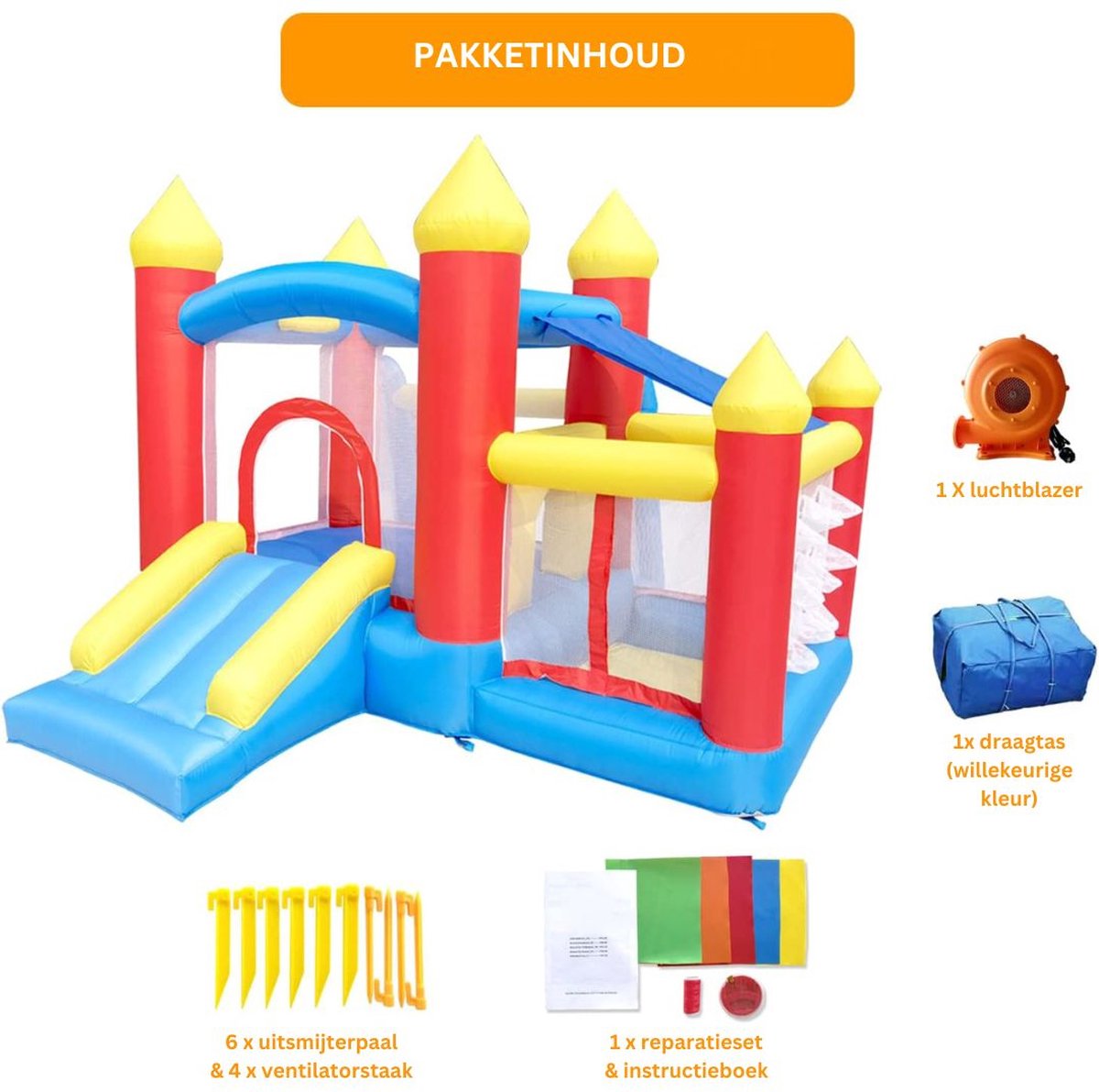 Naam / model | Springkasteel Blauw, Rood, en Geel |