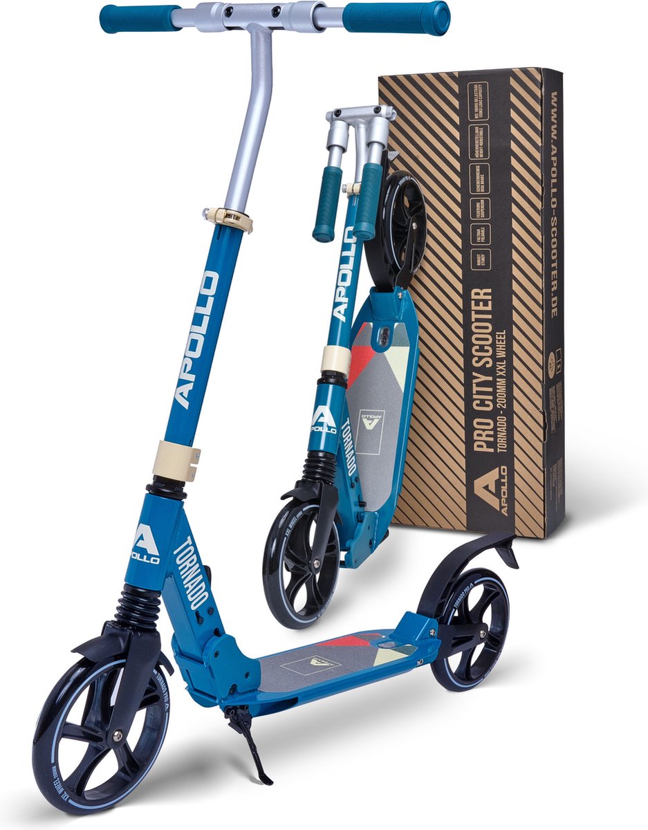 De Apollo City Step Tornado Pro is een compacte, opvouwbare step ontworpen als alternatief voor korte stadsafstanden en woon-werkverkeer. Het model combineert een lichtgewicht constructie met dubbele vering, grote 200 mm wielen en een in hoogte verstelbaar stuur, zodat zowel kinderen (vanaf ongeveer 7 jaar) als volwassenen tussen 120 en 190 cm ermee kunnen rijden. (bron: listing, gecontroleerd 2025)