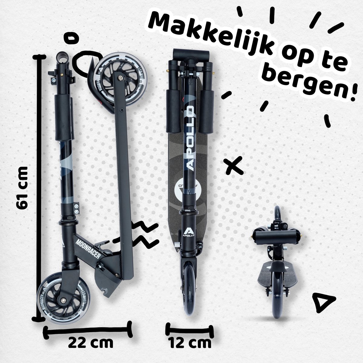 (Keyword: LED-Step Moonracer; Secondary keyword used: lichte step en opvouwbare step.)