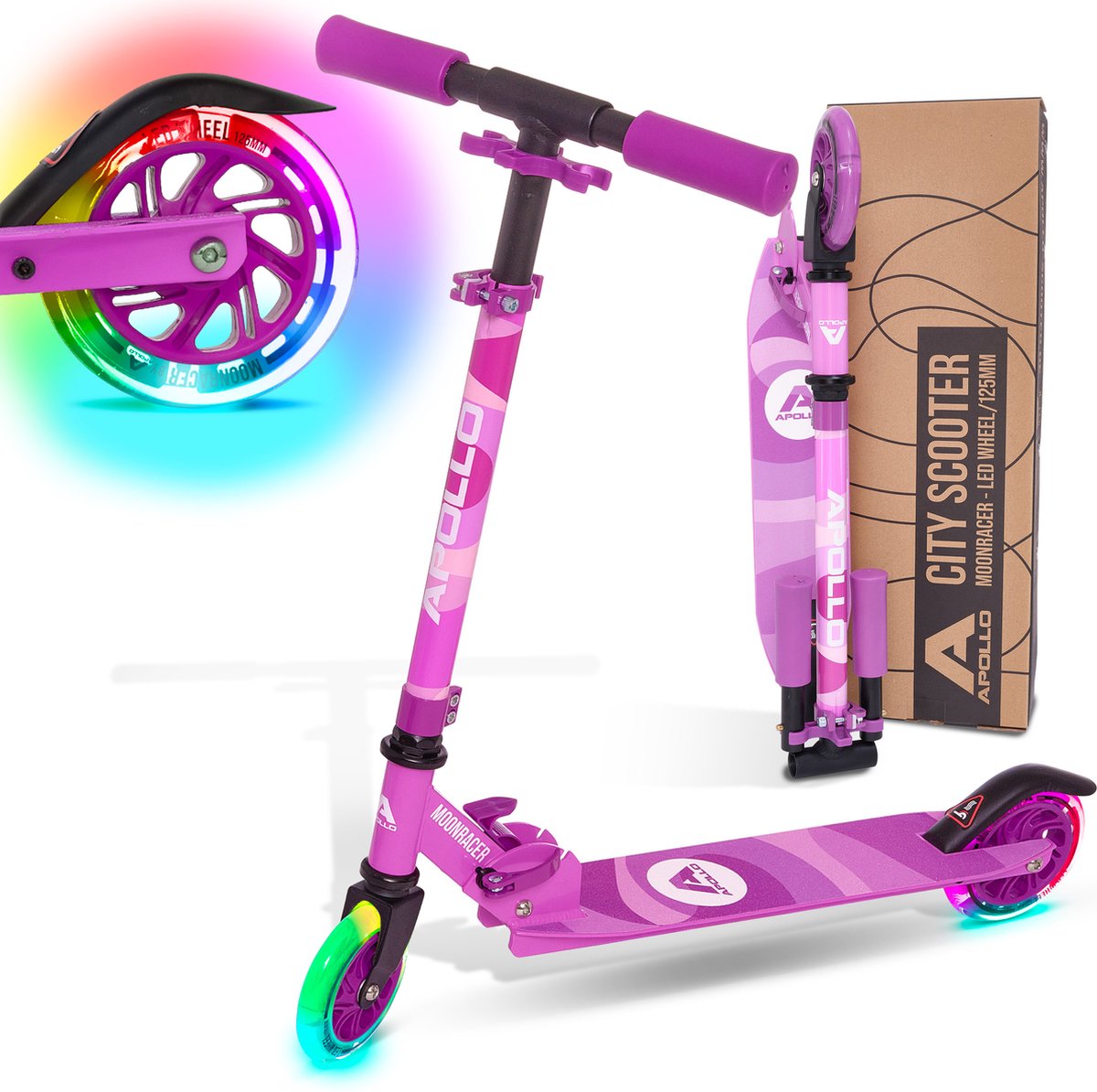De LED-Step Moonracer van Apollo is een lichte, opvouwbare step ontworpen voor jonge kinderen die voor het eerst leren steppen. Hij combineert een eenvoudig inklapsysteem met een verstelbaar stuur en opvallende LED-verlichting, zodat zowel functionaliteit als speelsheid worden gecombineerd.