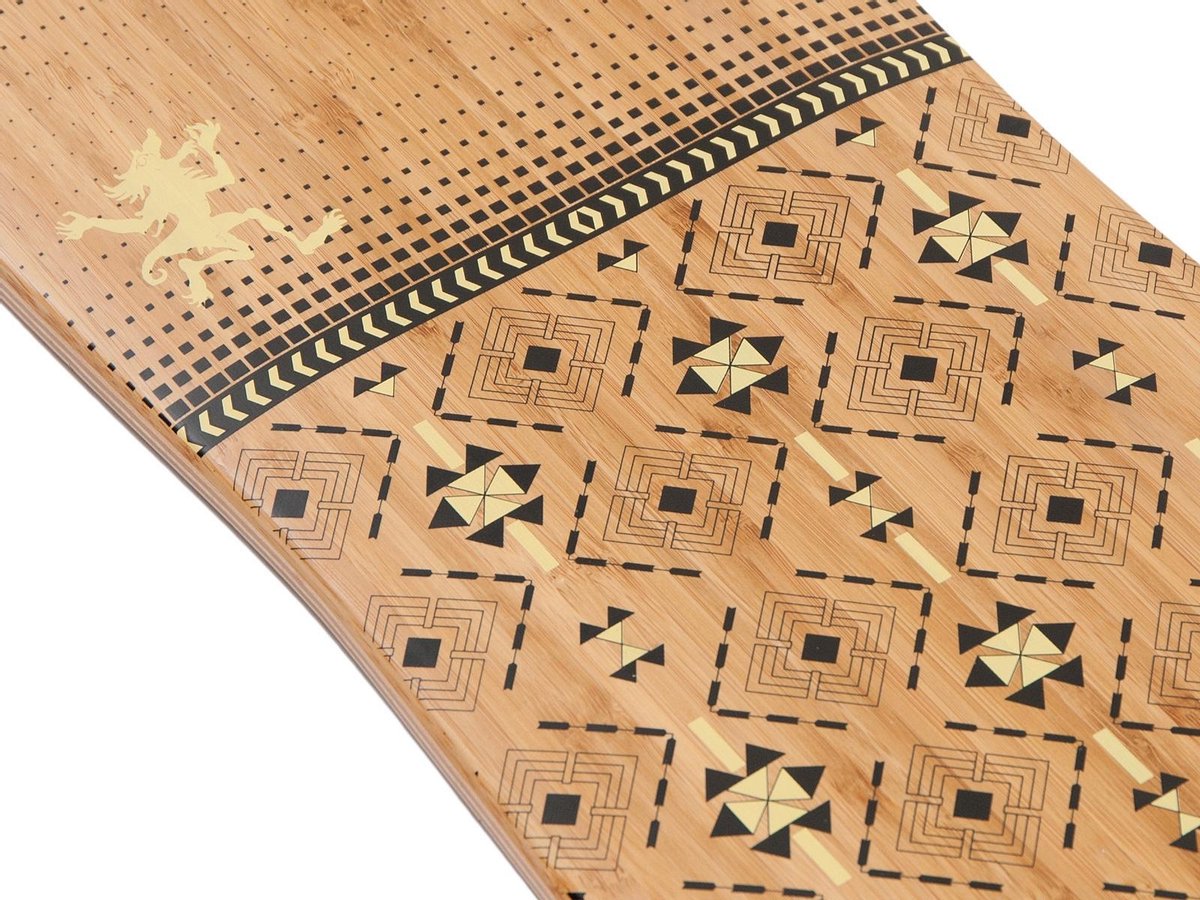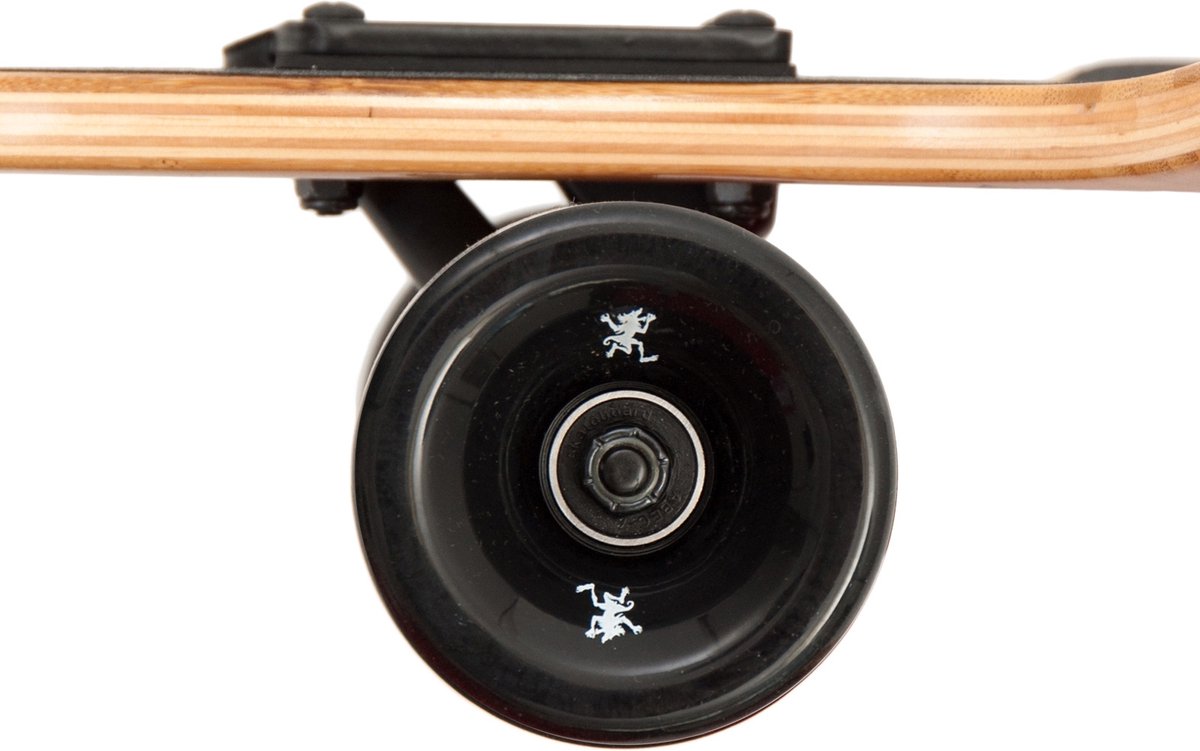Voordeel: de combinatie van hout en bamboe balanceert stijfheid en flex. In de praktijk betekent dit dat het board genoeg stijfte heeft voor stabiele ritten, terwijl de bamboelagen zorgen voor iets meer veerkracht en comfort op oneffen wegen. Voor wie langere tochten maakt of een tolerante flex wil bij carve-bewegingen, is dit nuttig.