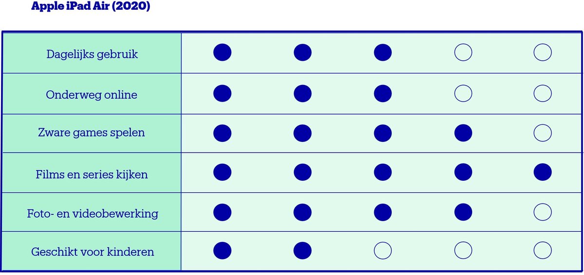 De Apple iPad Air is een sterke keuze voor wie een veelzijdige, draagbare tablet zoekt met genoeg power voor creatieve en productieve taken. Let bij aankoop op de extra kosten voor toetsenbord of Pencil als je die functies belangrijk vindt, en controleer de exacte configuratie (bijvoorbeeld opslag en 4G‑variant) bij de verkoper.