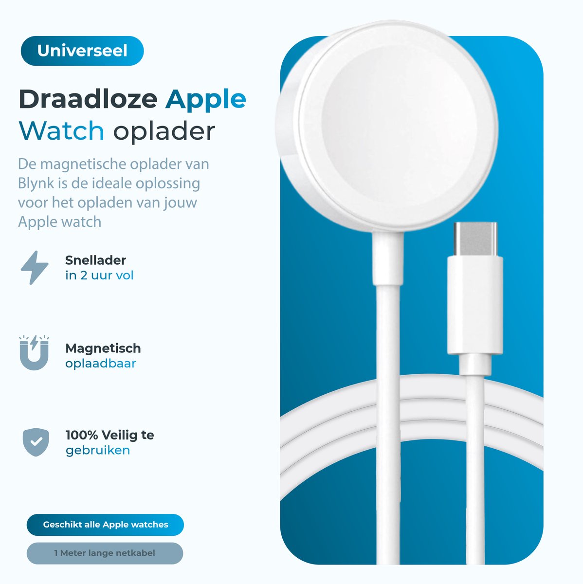 - Blynk Apple Watch Oplaadkabel (lengte: 1 meter) — vermeld in de productomschrijving (bron: listing, checked 2025)