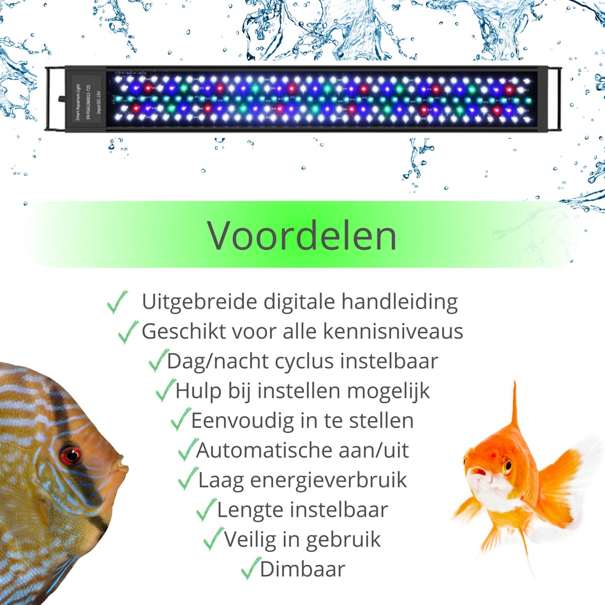Deze lamp is vooral bedoeld voor liefhebbers die hun aquarium eenvoudig willen verlichten met instelbare helderheid, tijdschema’s en sfeerkleuren, zonder losse controllers of ingewikkelde installatie. Of je nu een gezelschapsbak of een beplant aquarium hebt: met automatische dag/nacht-cycli en een breed lichtspectrum is dit een allround keuze voor deze maatklasse.