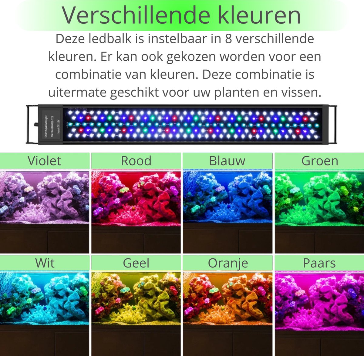 | Acht kleuren en automatische witte mix voor planten (volgens aanbieder) | Alleen geschikt voor de opgegeven maat; beperkte flexibiliteit bij grotere of zeer kleine bakken |