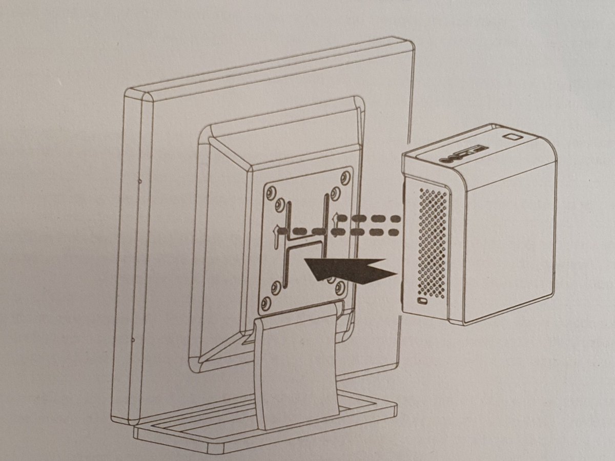 - Wat het doet: Met de meegeleverde VESA 75/100‑beugel klik je de NUC achterop een geschikte monitor.