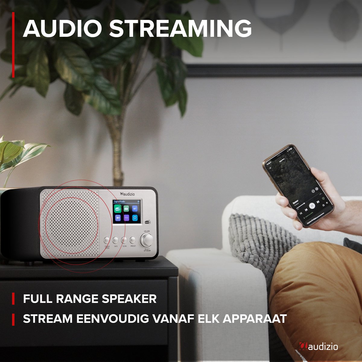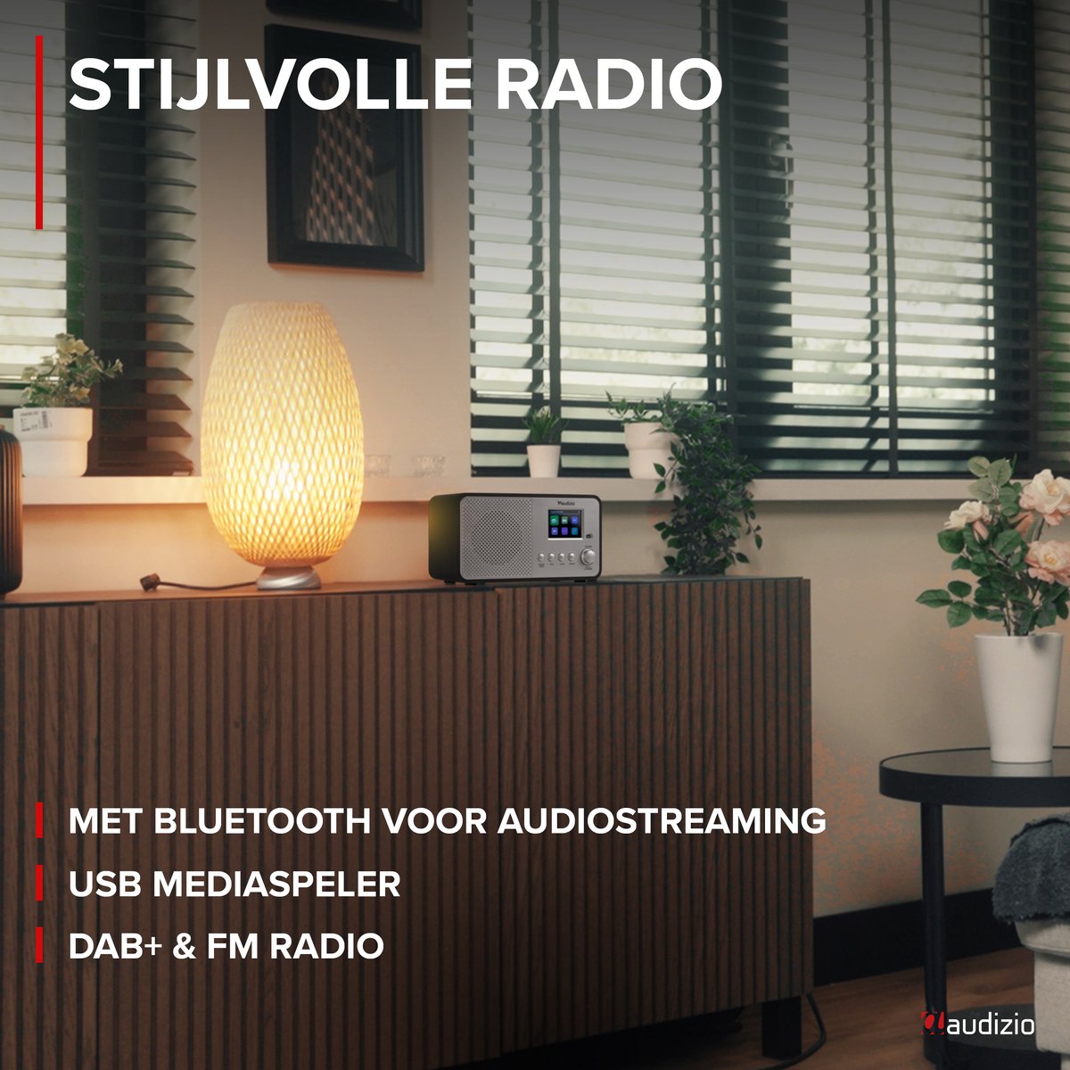De Audizio Avio is een compacte DAB radio die digitale en traditionele ontvangst combineert met een paar handige extra’s zoals een kleurendisplay, USB- en AUX-aansluiting en een sleeptimer. Hij richt zich op gebruikers die een betaalbare, veelzijdige radio zoeken voor thuisgebruik: keuken, kantoor of woonkamer.