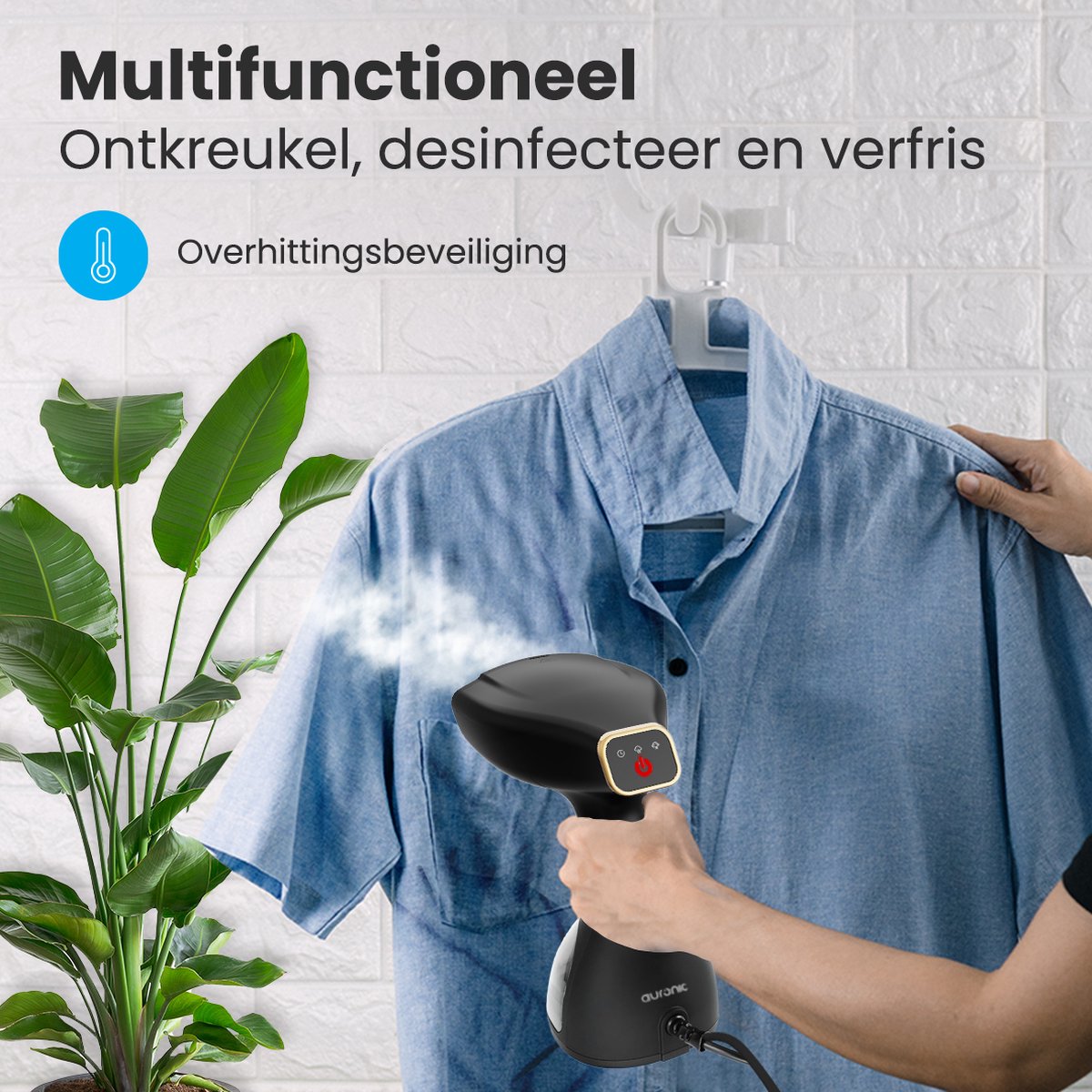 De Auronic kledingstomer is een compacte, krachtige handstomer die kreukels verwijdert, kleding opfrist en volgens de fabrikant tot 99% van de bacteriën doodt. Dankzij de snelle opwarmtijd (circa 25 seconden) en een verwijderbare watertank van 300 ml is het een handig hulpmiddel voor thuis, onderweg en op de set. De combinatie van 1500 watt, een lang snoer en meegeleverde opzetstukken maakt hem multifunctioneel voor kleding, bekleding en gordijnen.