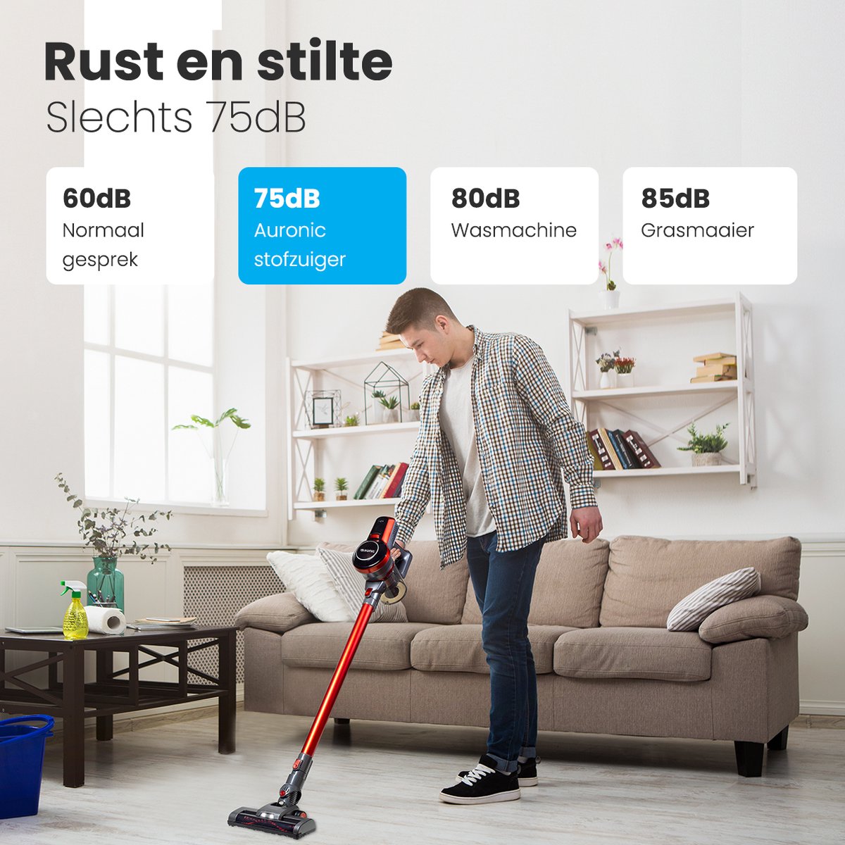 De Auronic 4-in-1 snoerloze steelstofzuiger biedt snelle, flexibele schoonmaak voor Nederlandse huishoudens die draadloos gemak zoeken. Met een 0,5 L stofcontainer werk je door zonder zakken te vervangen.