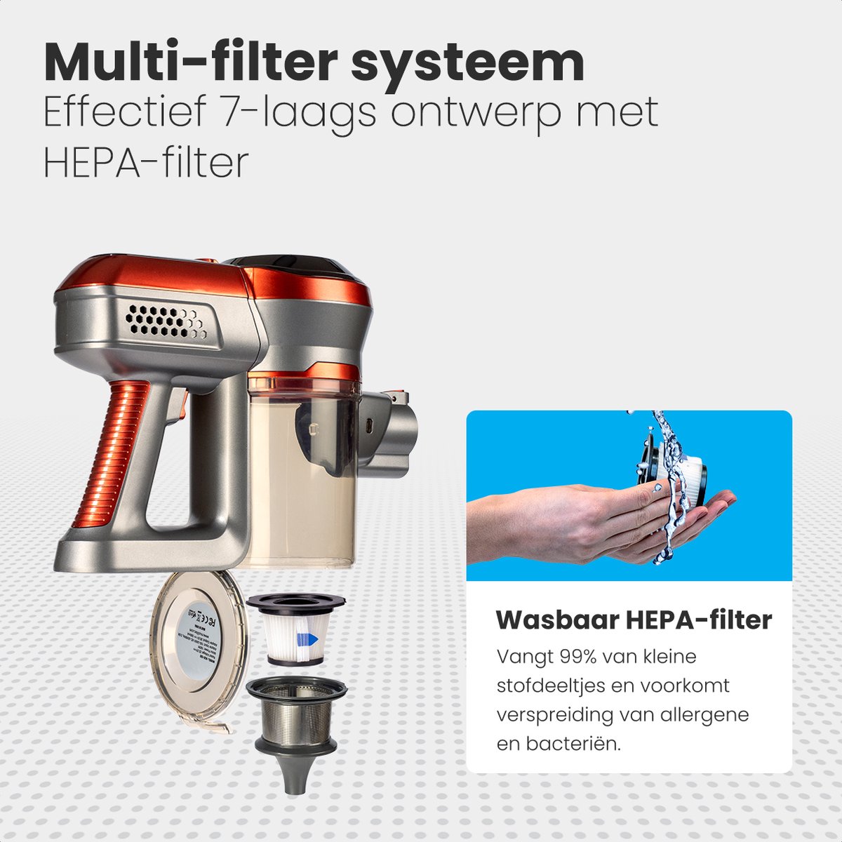 | Filter | Met HEPA-filter (wasbaar) |