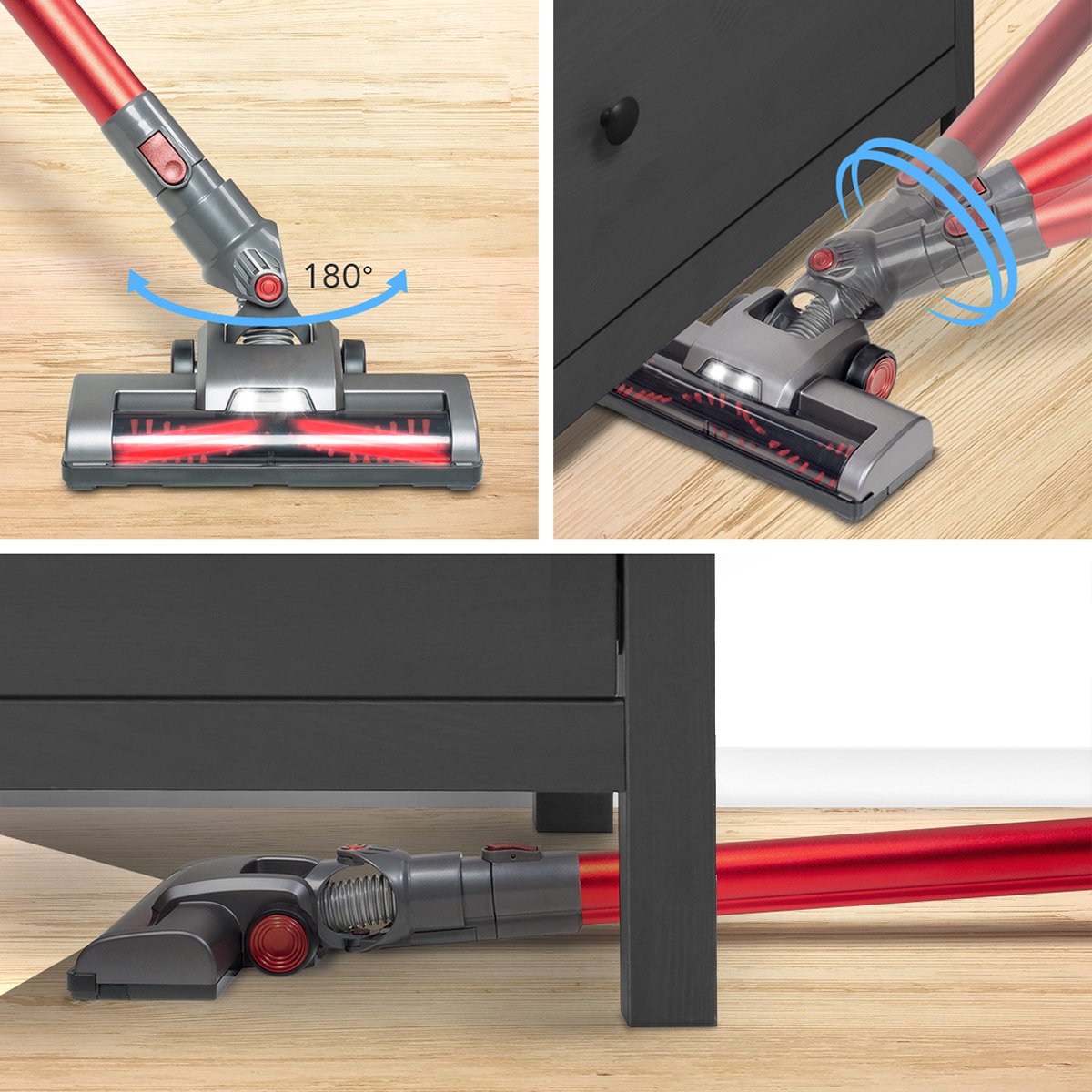 - Beweeg soepel rond meubels dankzij 180° draaibare zuigmond.