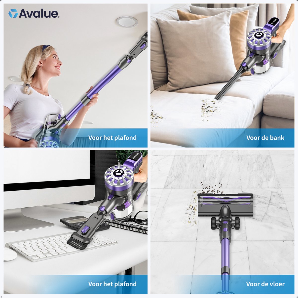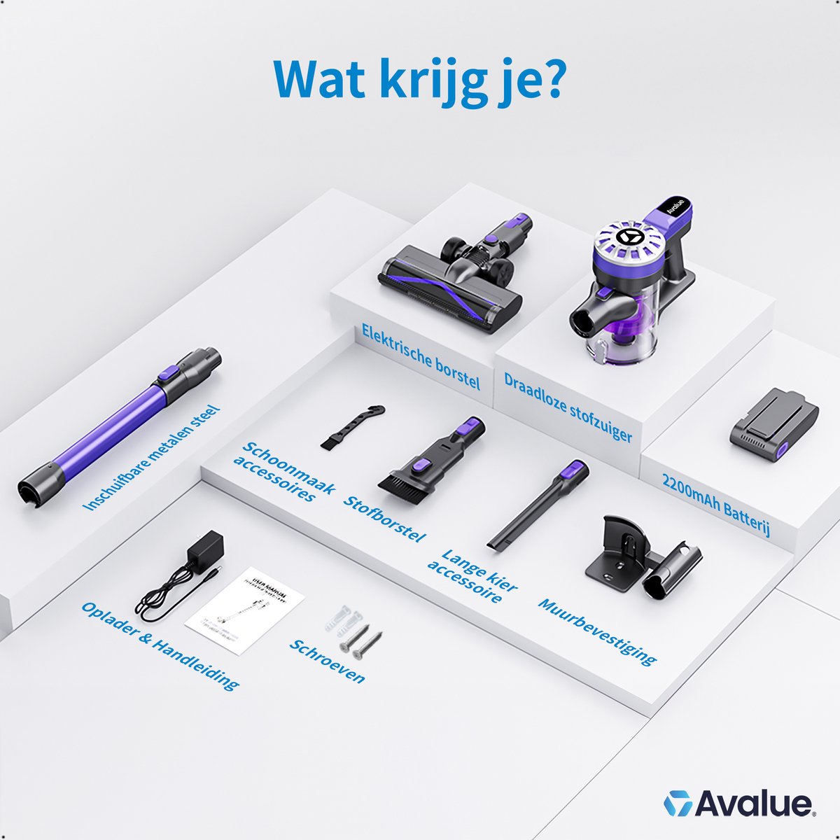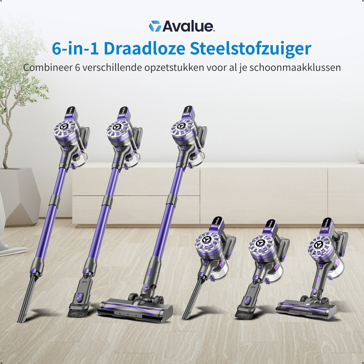 Avalue 6 in 1 Steelstofzuiger Draadloos – 180 Air Watts – Hepa – Licht en Efficiënt – Paars review: sterke zuigkracht op huisdierharen Prijzen