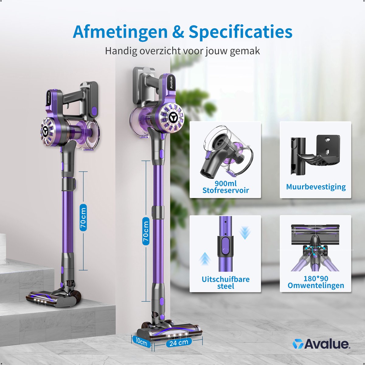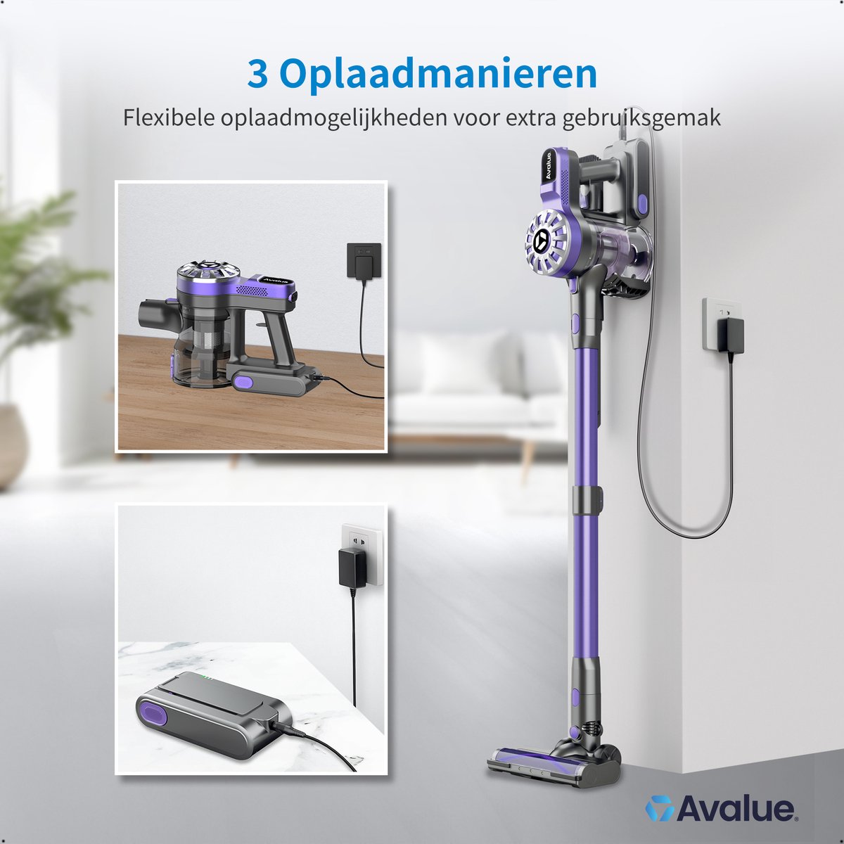 De Avalue Steelstofzuiger is een lichte, draadloze steelstofzuiger die schoonmaken in Nederlandse huishoudens moeiteloos maakt. Hij biedt wendbare vrijheid en krachtige prestaties voor zowel harde vloeren als tapijt. Met een gewicht van slechts 1,8 kg blijft hij comfortabel voor dagelijks gebruik.