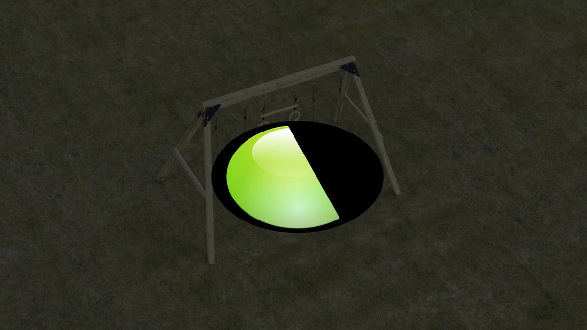 - Plaats de schommel op een vlakke bodem met voldoende vrije ruimte rondom (aanbevolen minimaal 1,5–2 m vrije zone rondom).