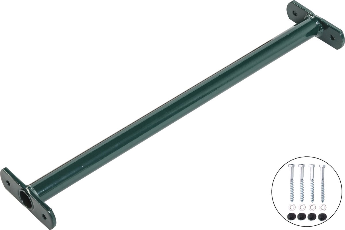 De B-Play Duikelstang 90cm Groen is een eenvoudige, metalen stang die je tussen twee palen of aan een speeltoestel kunt monteren om duikelacties uit te voeren. Het product is bedoeld voor gebruik in tuinen, op speelplaatsen of als toevoeging aan bestaande speeltoestellen voor kinderen die willen oefenen met turnen en klauteren. De stang is gepoedercoat, 90 cm lang en wordt geleverd als losse stang die je zelf bevestigt.