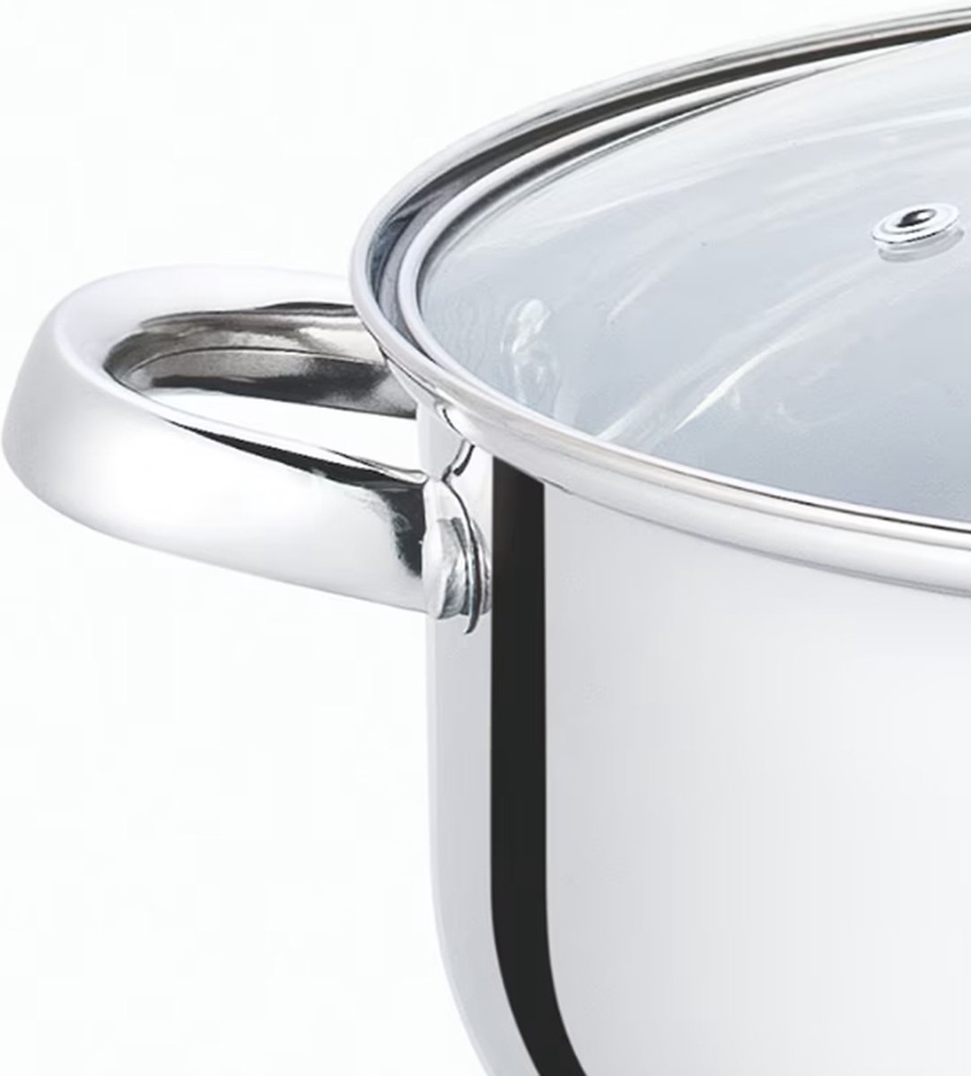 Ergonomie: de omschrijving noemt geen specifieke handgrepen of antislipkenmerken. Verwacht daarom een klassiek roestvrijstalen bevestigingssysteem; bij langere kooktijden kan een hittebestendige pannenlap of ovenhandschoen wenselijk zijn. Handgreepcomfort en balans zijn niet gespecificeerd en kunnen per uitvoering licht verschillen.