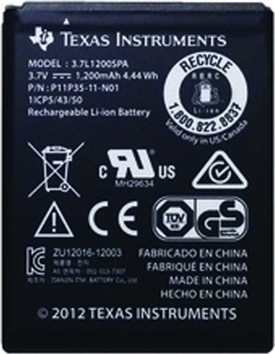 - Oplaadbare batterij model 3.7VL1200SP (geschikt voor TI Nspire CX II-T / CX II-T CAS)