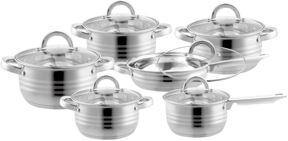 Hoogwaardig 18/10 roestvrij staal voor duurzaamheid | Exacte samenstelling van set (aantal pannen/deksels) niet vermeld |