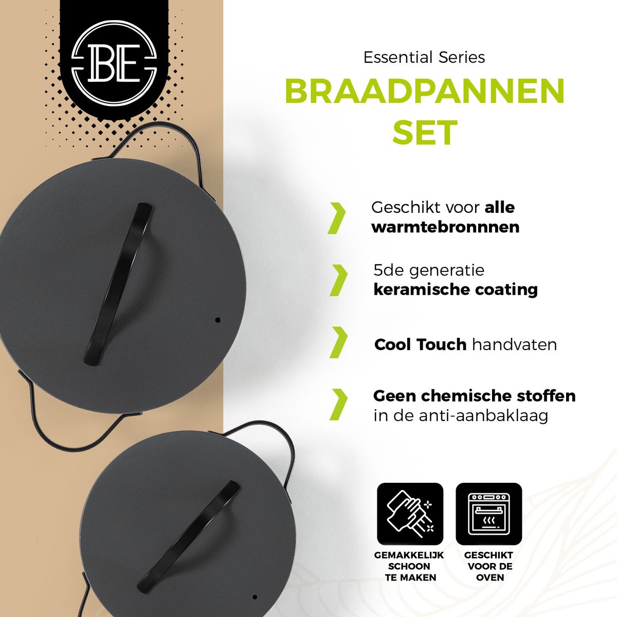 Specificaties: BE Living 2-delige Braadpannenset review: PFAS-vrij anti-aanbak