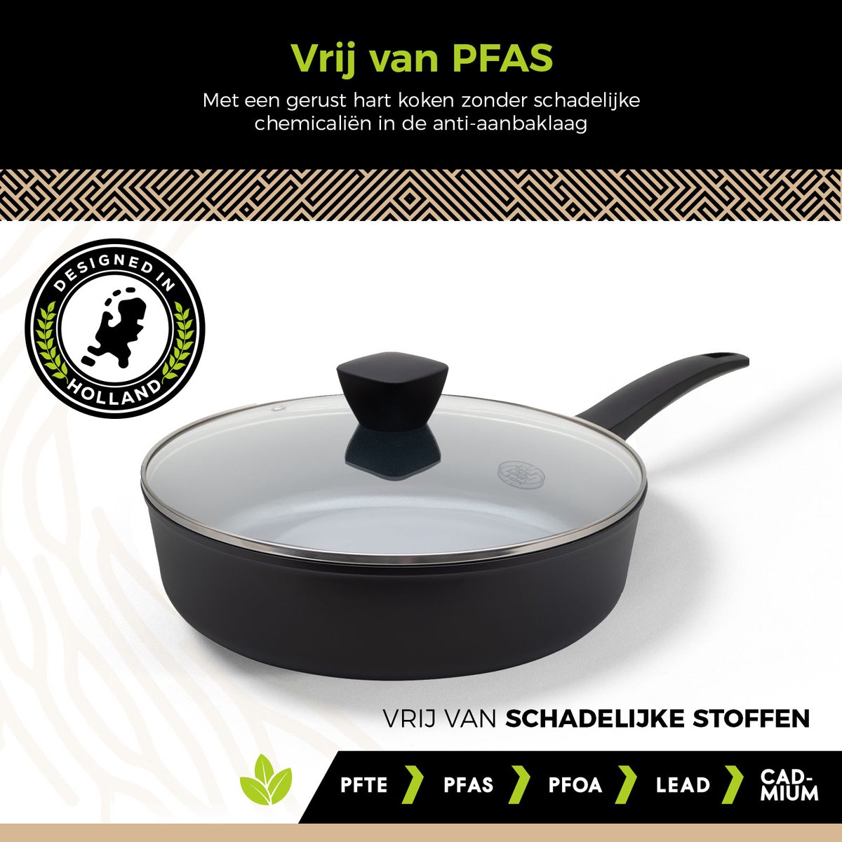- PFAS-vrije hapjespan met deksel, 28 cm, zwart