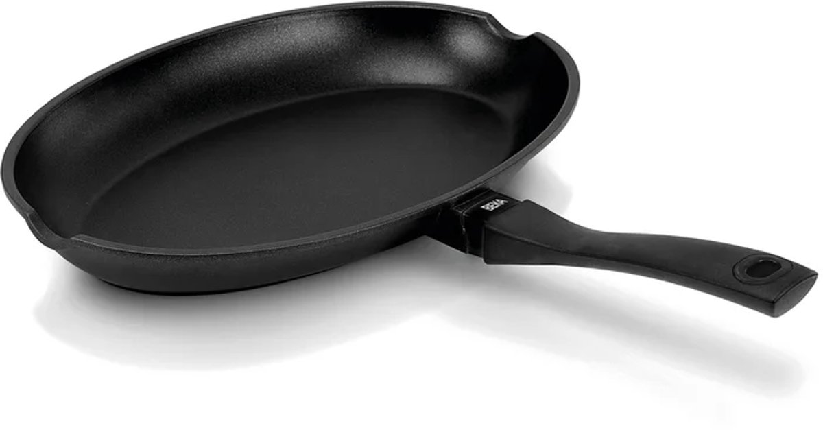 De Beka Energy vispan is een ovale koekenpan speciaal ontworpen om vis perfect te bereiden: krokant van buiten, zacht van binnen en zonder vastplakken. Hij combineert een 100% PFAS-vrije keramische antikleeflaag met een gegoten aluminium bodem en een slank, all-black ontwerp.