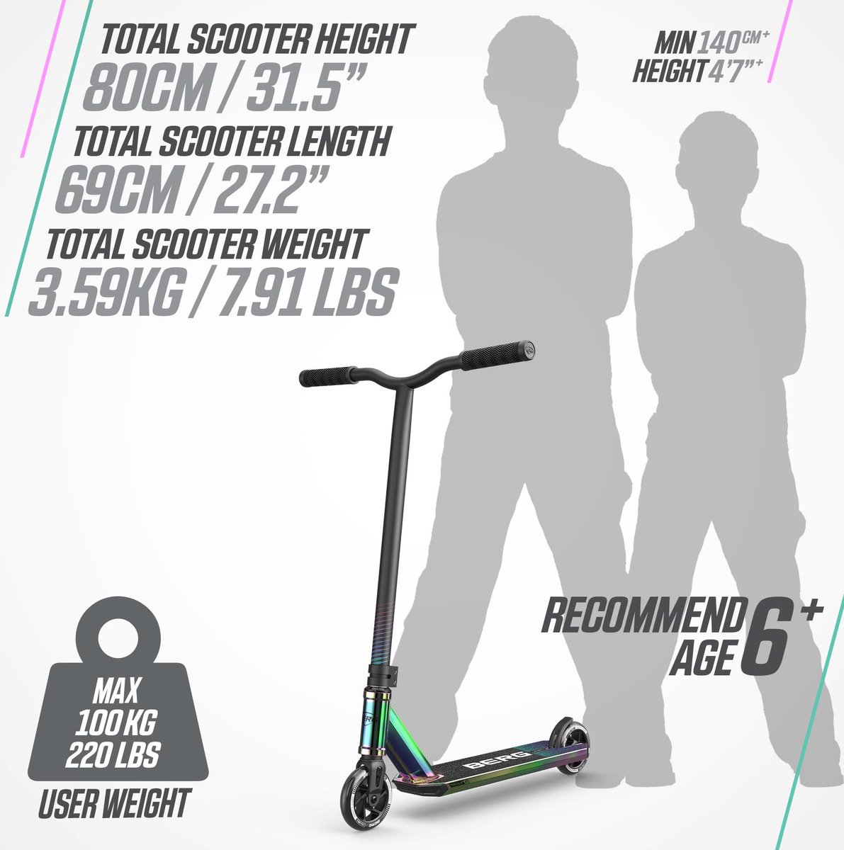 Specificaties: BERG Proxus X1 Stuntstep Neochrome review: ideaal voor freestyle