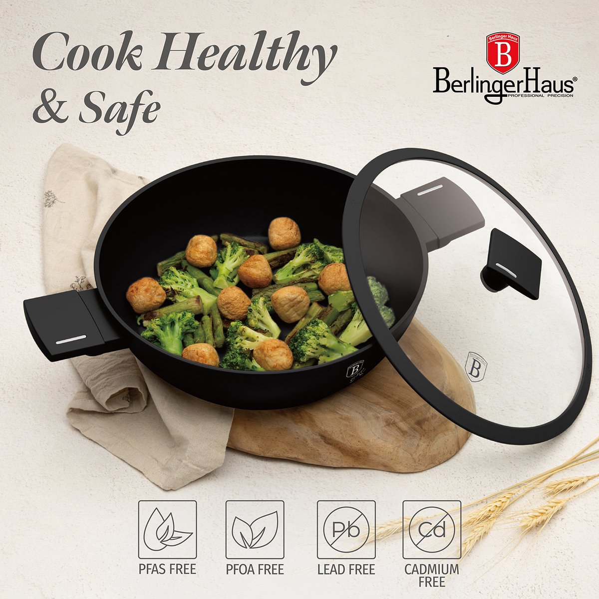 De Berlinger Haus Lage Kookpan is de veelzijdige pan voor Nederlandse keukens die moeiteloos willen bakken, stoven en roerbakken. Met een inhoud van 3,8 liter kook je gelijkmatig en met minder olie.