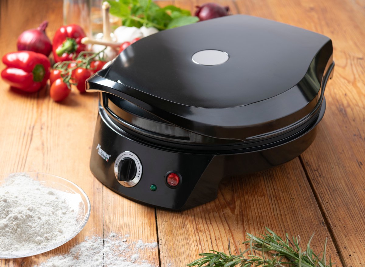 Een superveelzijdig en handig apparaat: niet alleen voor pizza, maar ook voor focaccia, tosti’s, omeletten (zonder gedoe met deksel om te keren), tortilla’s, pannenkoeken, karbonades en dunne kipfilets. Je maakt er van alles in zonder liters olie of boter te gebruiken. Niets bakt aan en na gebruik is een veeg met keukenpapier of een vochtige doek genoeg.